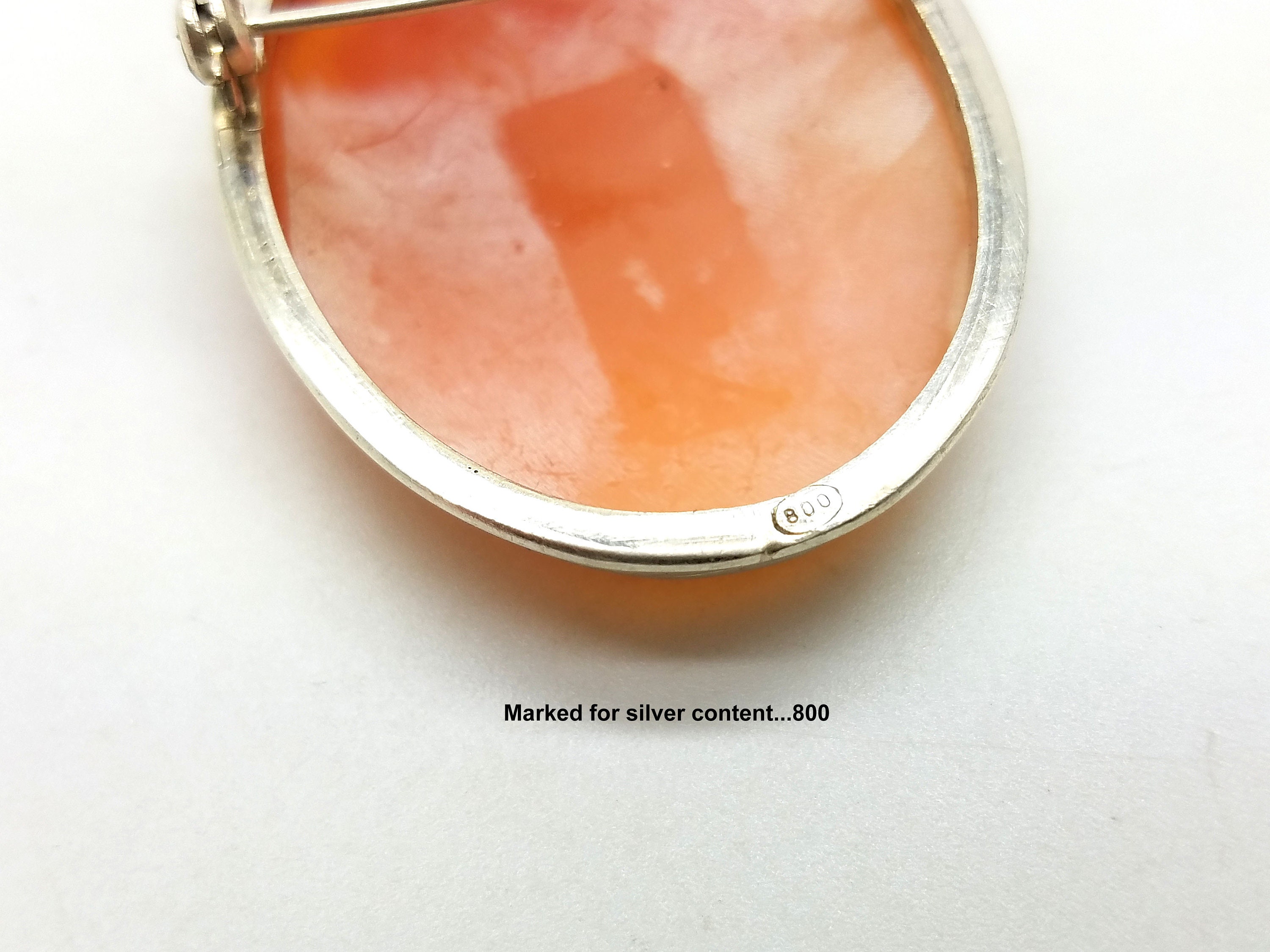 The Cameo is marked 800 on the back. Metals are NOT tested in my possession, descriptions are based on the markings.
